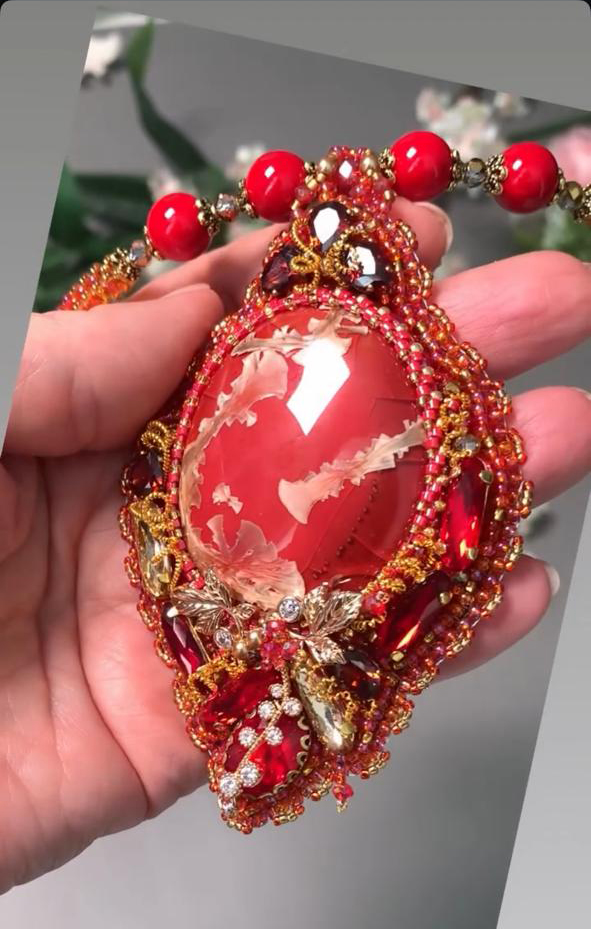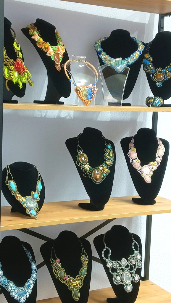 Эстетика украшений сочетает в себе богатое наследие ар-нуво, ориентализма и классики. Флористические мотивы с плавностью изогнутых линий напоминают ветви деревьев, стебли цветов и экзотических лиан. Украшения созданы не только из камней – творчество автора невозможно представить без японского и чешского бисера и мотивов керамики. Дуэт натуральных камней и материалов ручной работы рождает неограниченные возможности для мастера. В россыпи элементов автор видит пробуждение весны, зимние сны, свежесть талой воды, сочную зелень и искрящиеся морские воды.