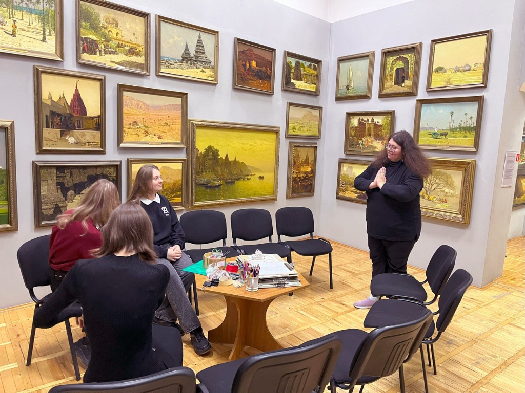 Темой октябрьской встречи стала индийская серия картин. В самом начале участникам было предложено пройти квест по поиску фрагментов картин П.М. Гречишкина. Научный сотрудник галереи Ксения Ивашута прочитала для слушателей лекцию о том, как создавалась серия пейзажей Индии, почему художник обратил внимание на эту страну, почему эта страна стала единственной, в которую он возвращался неоднократно. В беседе были затронуты и страницы из современной истории и культуры Индии.