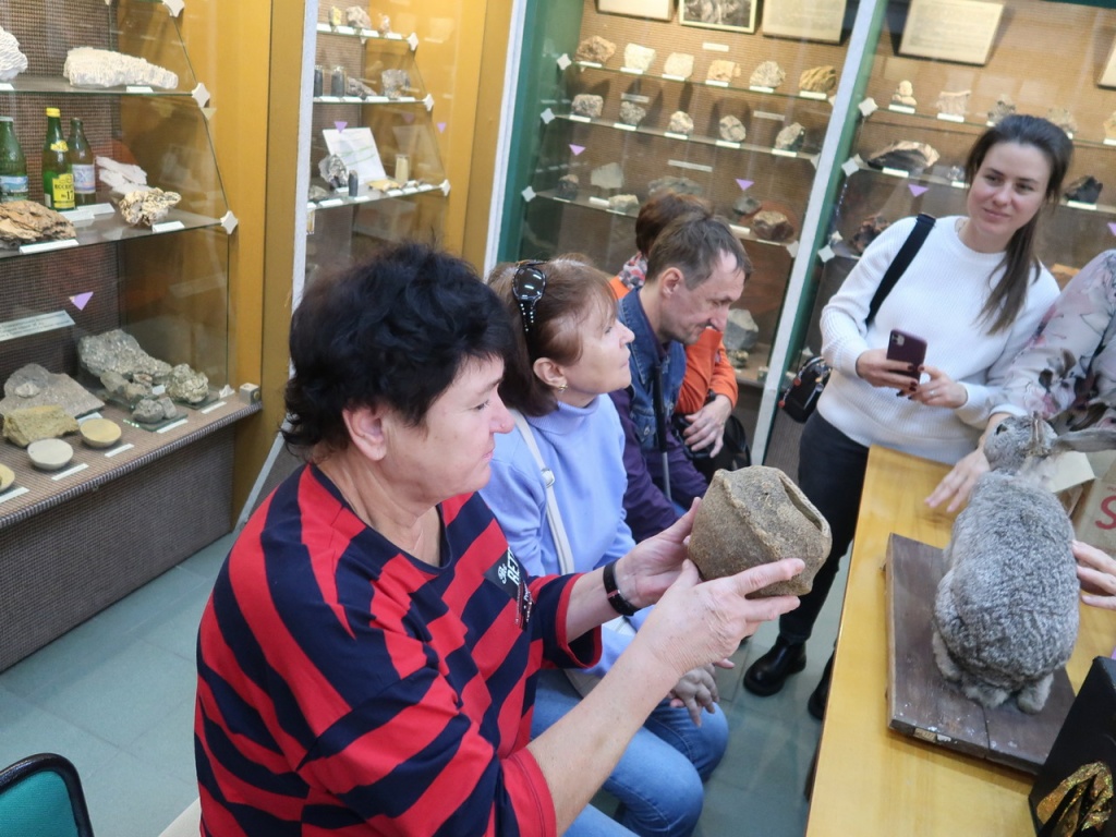 16 октября читатели библиотеки для слепых и слабовидящих имени В. Маяковского в очередной раз посетили музей-заповедник, чтобы познакомиться с тактильной экспозицией «Мир природы». Научные сотрудники рассказали много интересных деталей о палеонтологических раскопках и о том, как были найдены скелеты обитавших на территории Ставропольского края южных слонов – Архипа и Нюси (в силу огромных размеров к ним удалось только прикоснуться). Много экспонатов зала природы посетителям удалось взять прямо в руки – различные виды шишек, ракушек, чучела зайца, утки, ёжика, петуха, а также растения, чьи веточки и лепестки имеют свою структуру и текстуру.