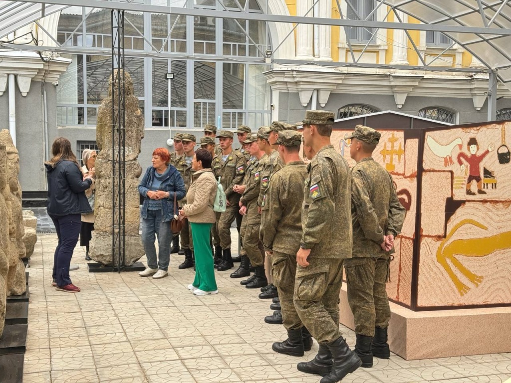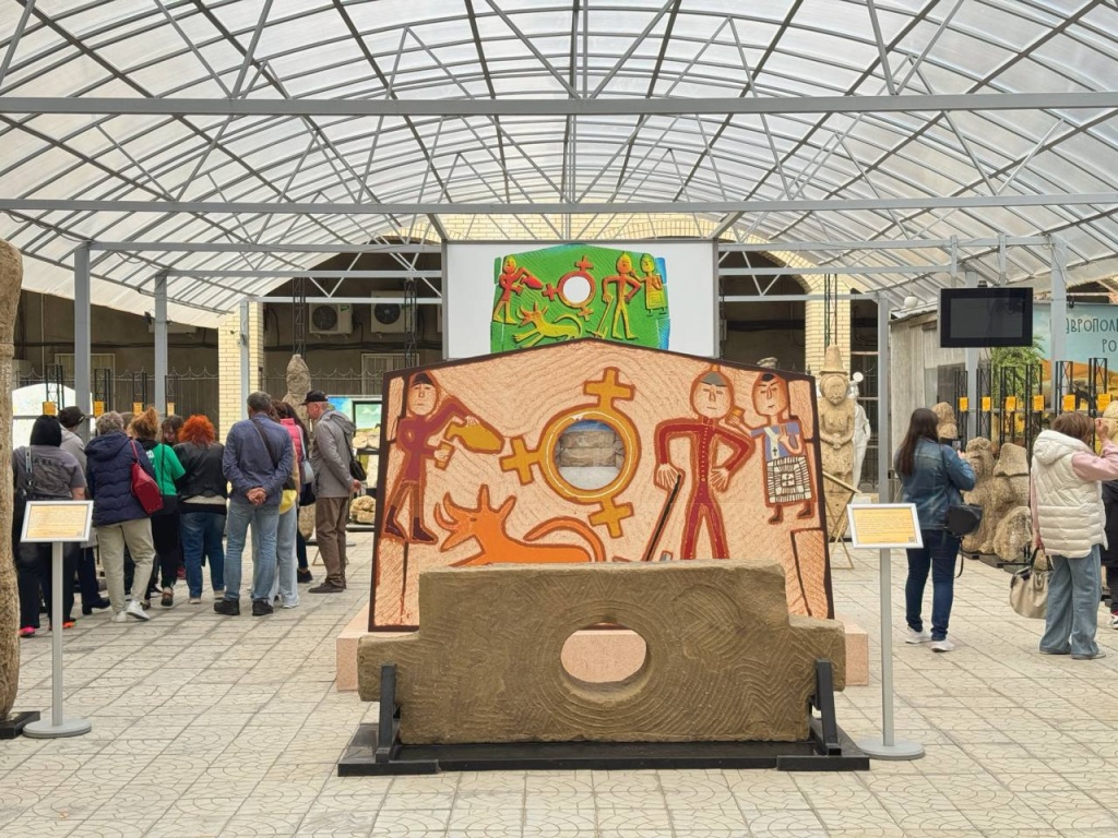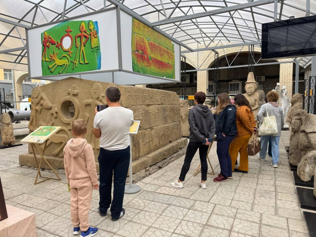 В музейном дворике прошли бесплатные сборные экскурсии по лапидарной коллекции, где представлены скифские, половецкие и аланские каменные изваяния от эпохи бронзы до средних веков, найденные на территории Ставропольского края и Северного Кавказа. Жители и гости города смогли увидеть обновленный мавзолей аланского правителя XI века, реставрация которого проводилась в 2024-2025 годах, а также воссозданный в натуральную величину макет мавзолея с цветными изображениями. Сотрудники музея познакомили всех желающих с историей памятника и рассказали о значении сюжетов на его стенах.