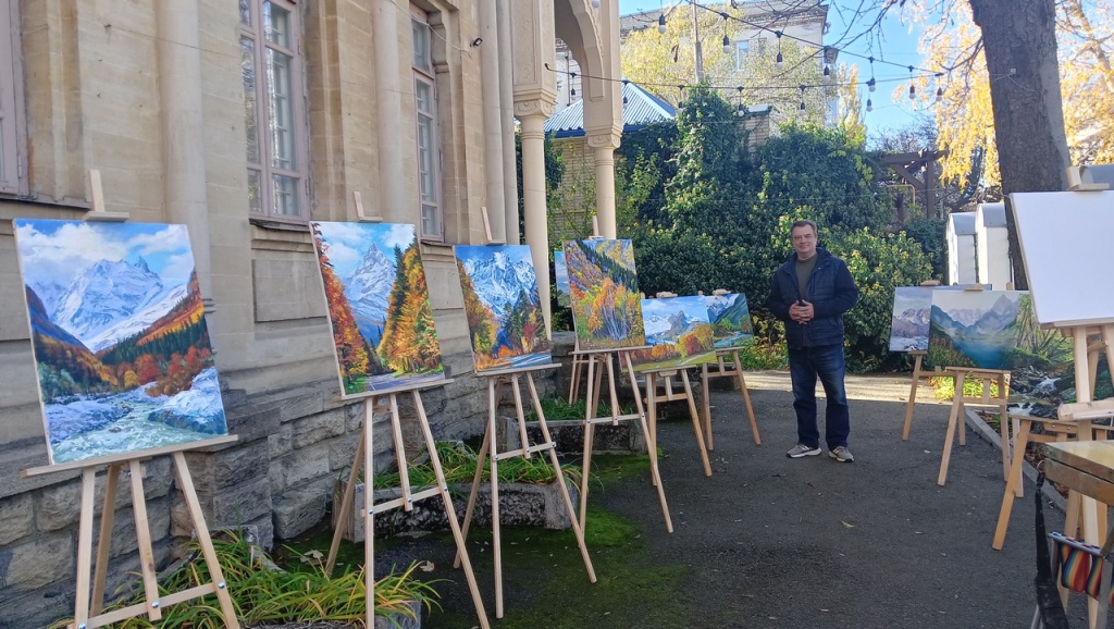 Во внутреннем дворике картинной галереи художник Павел Лебедев, член Профессионального союза художников России, представил вернисаж пейзажей своего авторства. Камерная серия картин показала удивительное многообразие пейзажей родного края и Северного Кавказа: от заснеженных уголков Таманского леса до осеннего убранства Тебердинского заповедника. Некоторые из осенних пейзажей автора были написаны накануне праздника. Художник наглядно продемонстрировал зрителям творческий процесс создания этюда на импровизированном мастер-классе.
