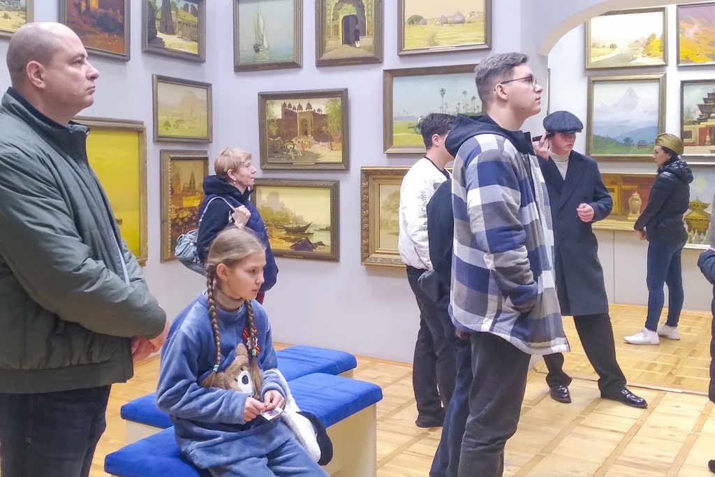 В холле картинной галереи демонстрировалась мультимедийная презентация, проходили тематические экскурсии, исполнялись песни военных лет.