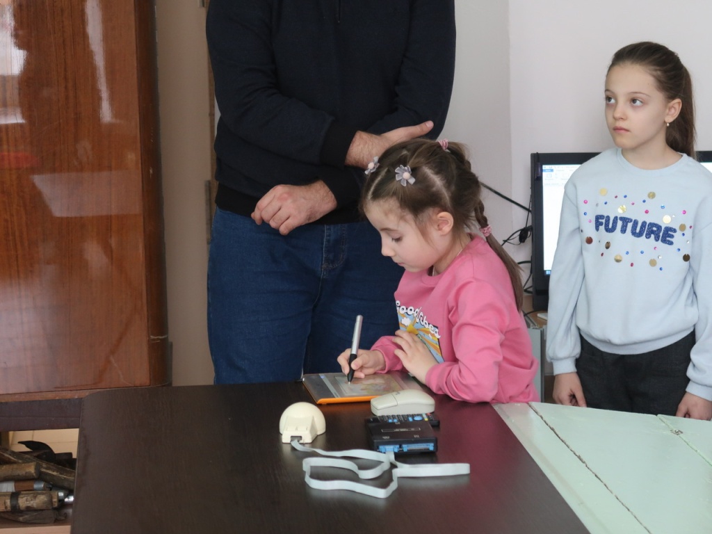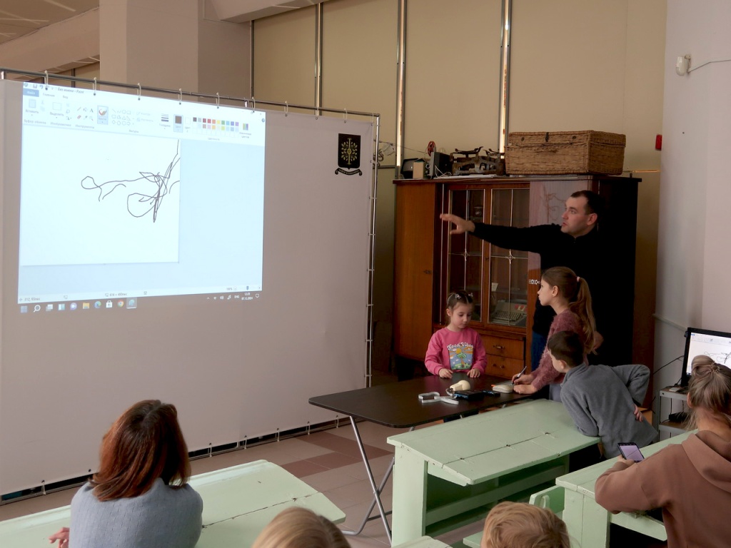 Заведующий депозитарно-выставочным отделом В.Д. Бабенко провел интерактивную экскурсию для участников проекта «Расту в музее», рассказав интересную историю появления компьютерной мыши, и продемонстрировал образцы гаджетов из музейного собрания. Один из них – мышь «Марсианка», созданная в СССР в 1991 г. Дети испытали графический планшет, который имеет много общего с мышью, но создан для творчества.