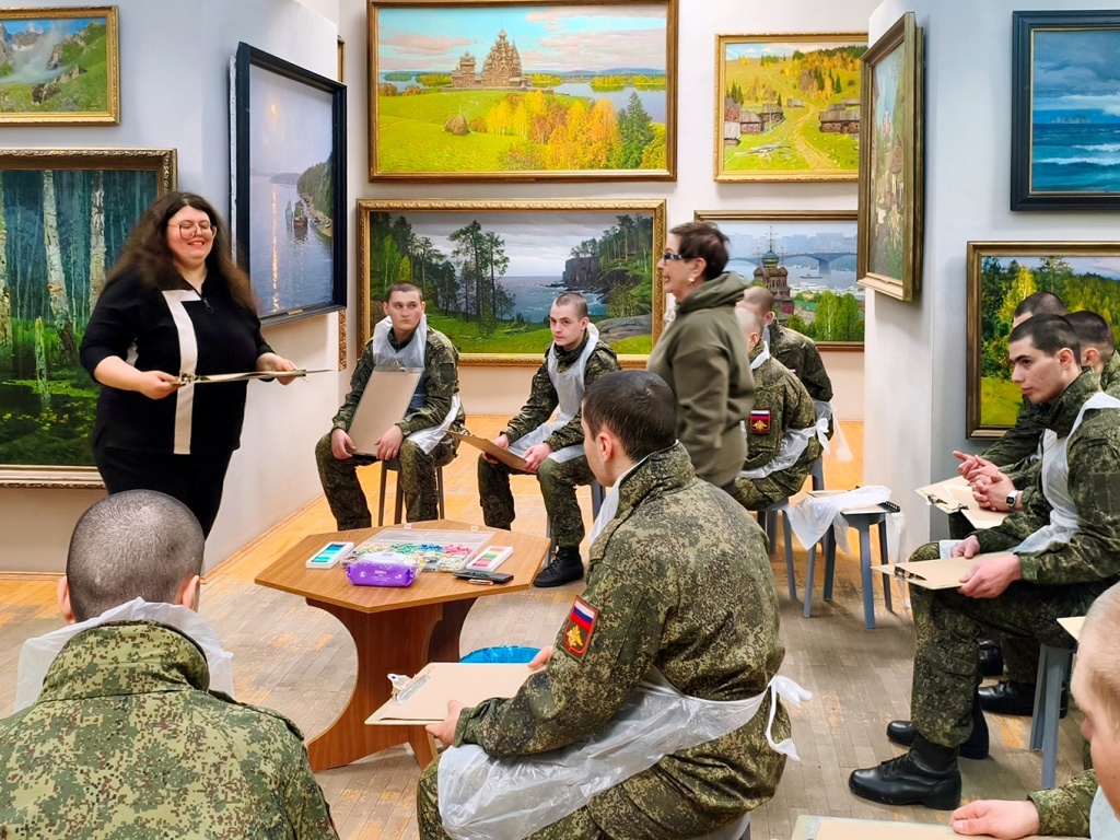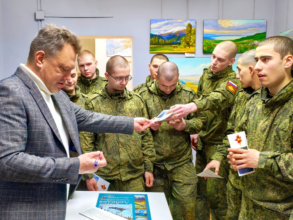 Для гостей была подготовлена особенная художественная программа, сочетающая изобразительное искусство и музыку. Старт мероприятию дал автор выставки «Времена года», художник Павел Лебедев. Пейзажист провел экскурсию, подписал и вручил солдатам открытки с репродукциями своих произведений.