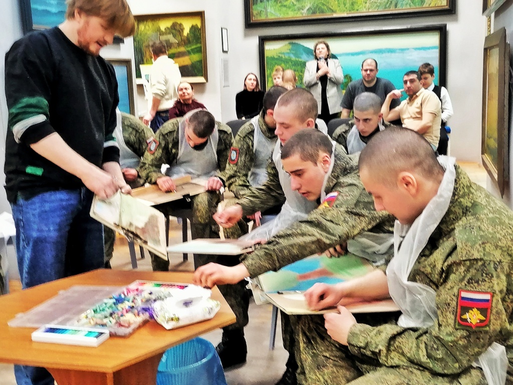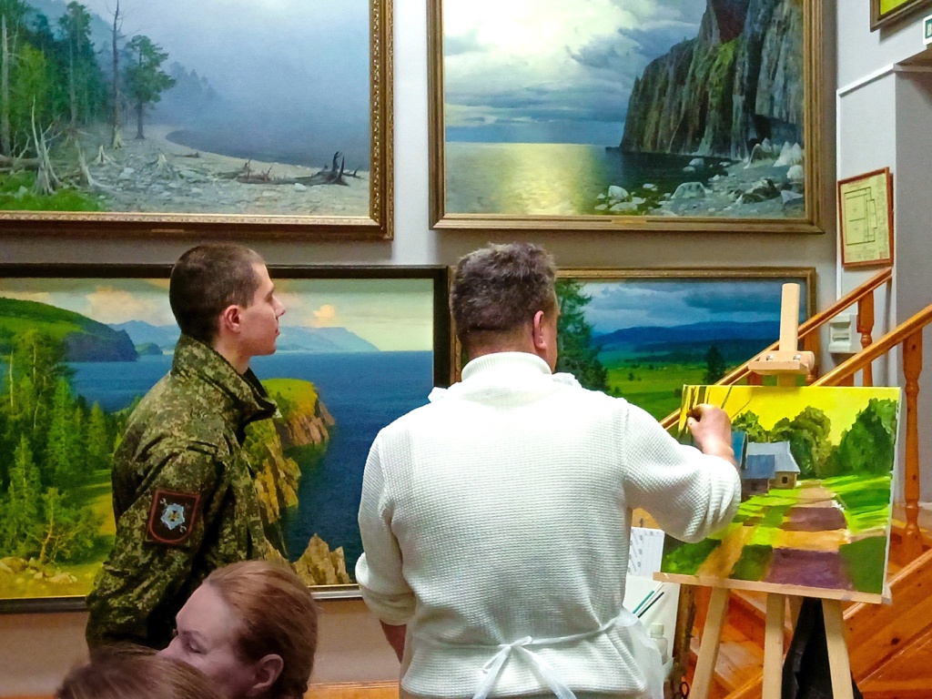 После просмотра гости были приглашены на мастер-класс по рисованию «На пленэр с Гречишкиным». Занятия проводил научный сотрудник Андрей Шевцов под фортепианную музыку в исполнении юных талантов студии «English and music». Музыканты играли классические произведения, вдохновляя военнослужащих на творческие эксперименты. Параллельно Павел Лебедев показывал процесс написания художественной копии картины П.М. Гречишкина «Деревенька» 1986 года.