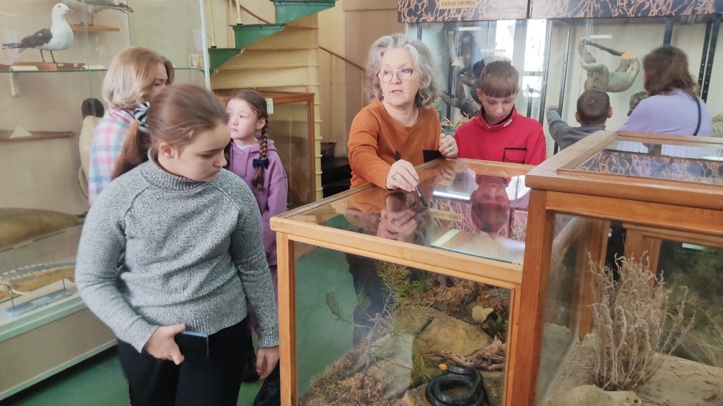 Заведующий отделом природы Данилевич Вера Геннадьевна рассказала участникам культурно-образовательного проекта «Расту в музее» об озере Маныч-Гудило, которое входит в список Рамсарской конвенции. Экскурсанты узнали о 150 видах птиц водно-болотных угодий Ставропольского края. Из них в региональную Красную книгу включены 36 видов птиц. В экспозиции музея-заповедника ребята рассмотрели цаплю, лебедей, лысуху, пеганок, пастушка, гусей, чомгу и многих других птиц.