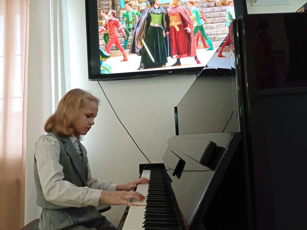 Продолжила концерт музыка из балета Сергея Прокофьева «Ромео и Джульетта». «Танец рыцарей» – суровый и торжественный рыцарский марш, в котором композитор раскрывает тему вражды знатных итальянских родов Монтекки и Капулетти, – исполнила дебютантка концертов в музее, ученица частной школы Попова Вероника, 9 лет, педагог Н.В. Голубов.