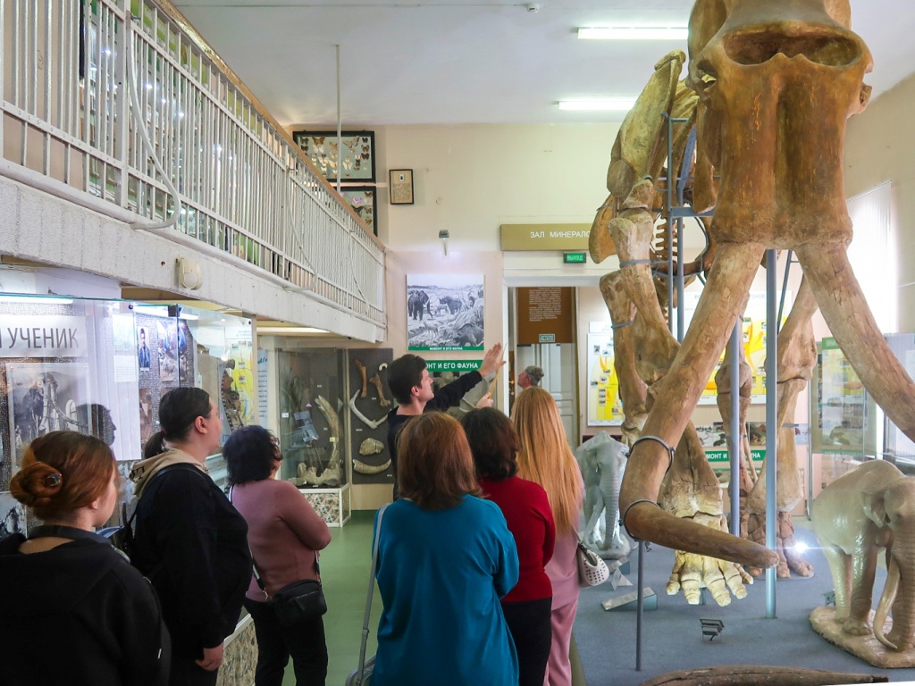Для посетителей в сопровождении социального работника старший научный сотрудник отдела природы В.В. Волокитин провел тематическую экскурсию «Природа Ставропольского края». Гости узнали, как формировалась и развивалась фауна Ставрополья за миллионы лет, познакомились с богатой палеонтологической коллекцией музея, увидели знаменитые скелеты южных слонов, ископаемого кита, носорога эласмотерия, лошади гиппариона и других.