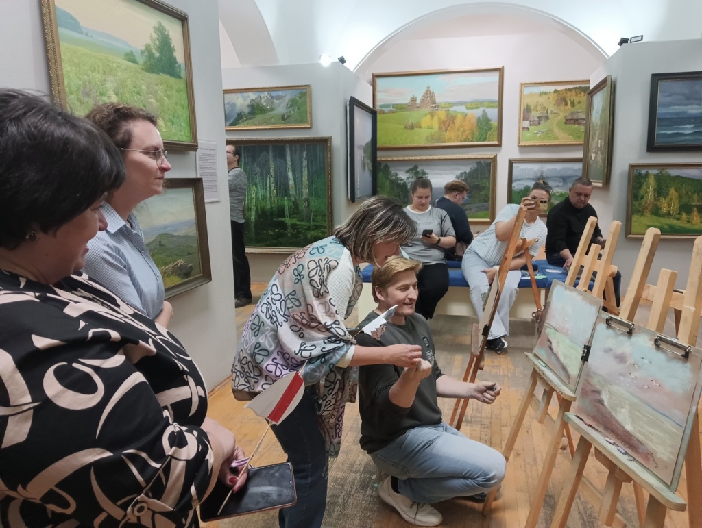 Младший научный сотрудник картинной галереи Андрей Шевцов поделился опытом проведения мастер-классов «На пленэр с Гречишкиным», предложив желающим попробовать себя в роли художников.