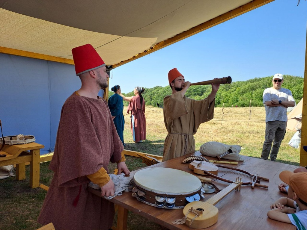 В греческом шатре перед гостями фестиваля вновь выступил легендарный рапсод Антоний. В его исполнении прозвучали девятая и десятая песнь поэмы Гомера «Одиссея» под аккомпанемент авлоса, рамочного барабана и флейты. Здесь же прошли выступления ансамбля «Алькантар» из Москвы, которые погрузили слушателей в мир древнегреческой музыки и познакомили с античными музыкальными инструментами.