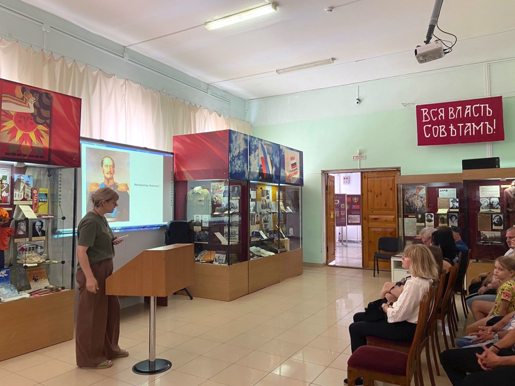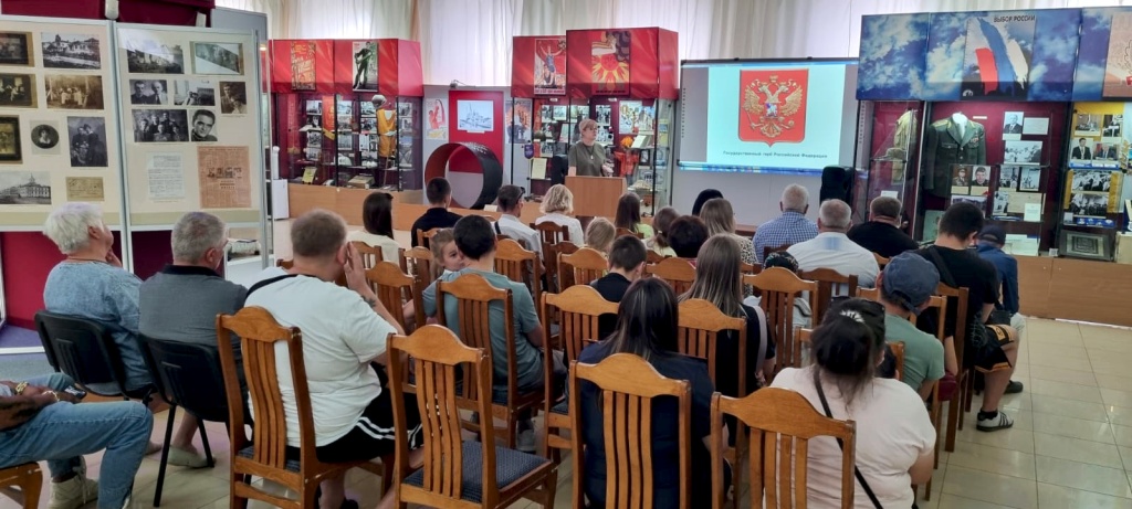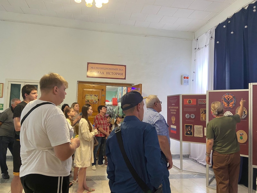 Для гостей мероприятия также была проведена экскурсия по выставке «Исторические символы России», где они познакомились с историей других государственных символов – герба и гимна.