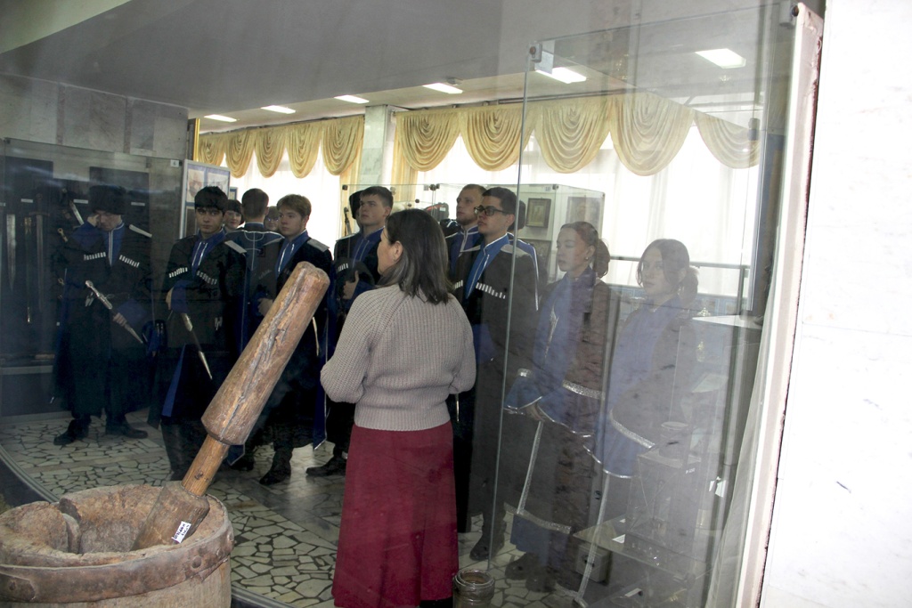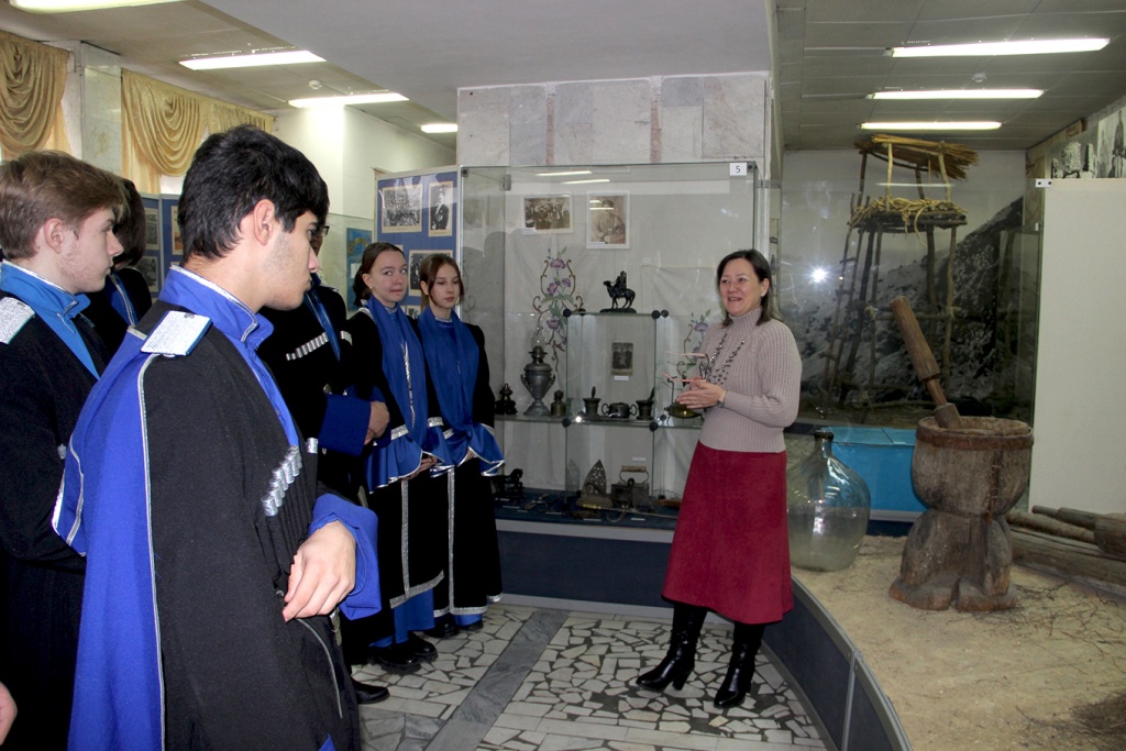 В ходе обзорной экскурсии заведующая отделом истории казачества О.В. Иванова познакомила студентов с богатой историей и традициями казаков, рассказала о значимости казачества для защиты Отечества на протяжении веков. Затем состоялась интерактивная лекция, посвященная героям России – от средневековой Руси до наших дней. Мероприятие стало не только познавательным, но и патриотическим, формируя у студентов чувство гордости за историю своей страны и уважения к защитникам Отечества.