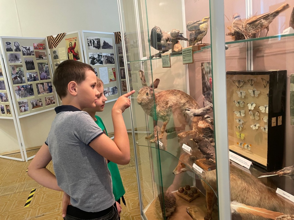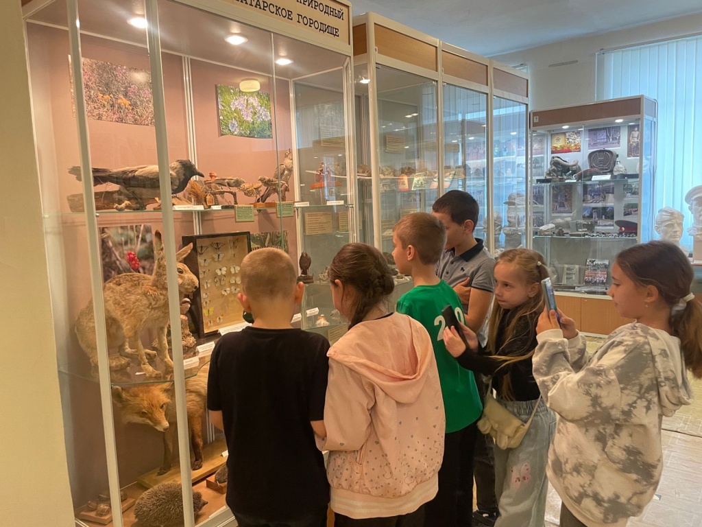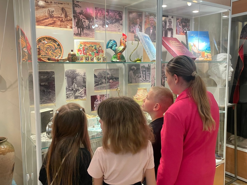 Сотрудники филиала провели экскурсию по экспозиции и рассказали о развитии села Татарка и его неразрывной связи с историей Российского государства. Затем они представили тематическое слайд-шоу и рассказали о государственных символах России. Герб – эмблема государства с изображением золотого двуглавого орла на красном щите. Две головы орла символизируют единство страны: он смотрит одновременно на запад, и на восток. В лапах орла – скипетр и держава. Скипетр – это жезл, символ власти, он украшен резьбой и драгоценными камнями. Держава – это золотой шар с крестом наверху.