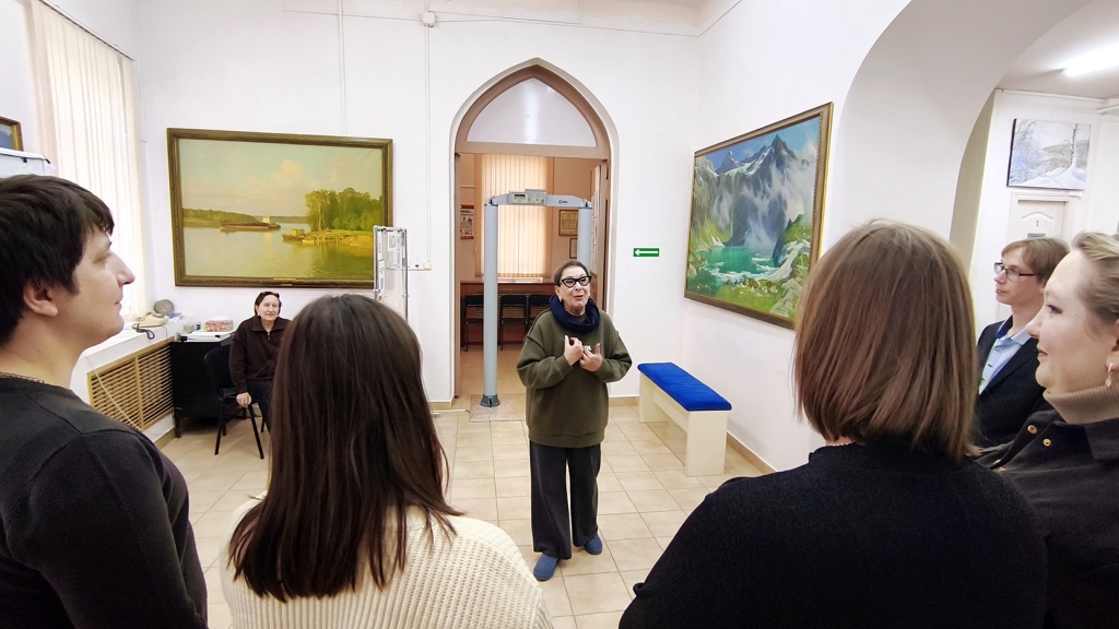 13 февраля 2026 года в рамках сотрудничества с Центром профессиональной переподготовки и повышения квалификации работников культуры г. Ставрополя в картинной галерее прошла обзорная экскурсия для преподавателей творческих дисциплин (живопись, музыка, хореография) детских школ искусств г. Антрацита и Антрацитовского района ЛНР.