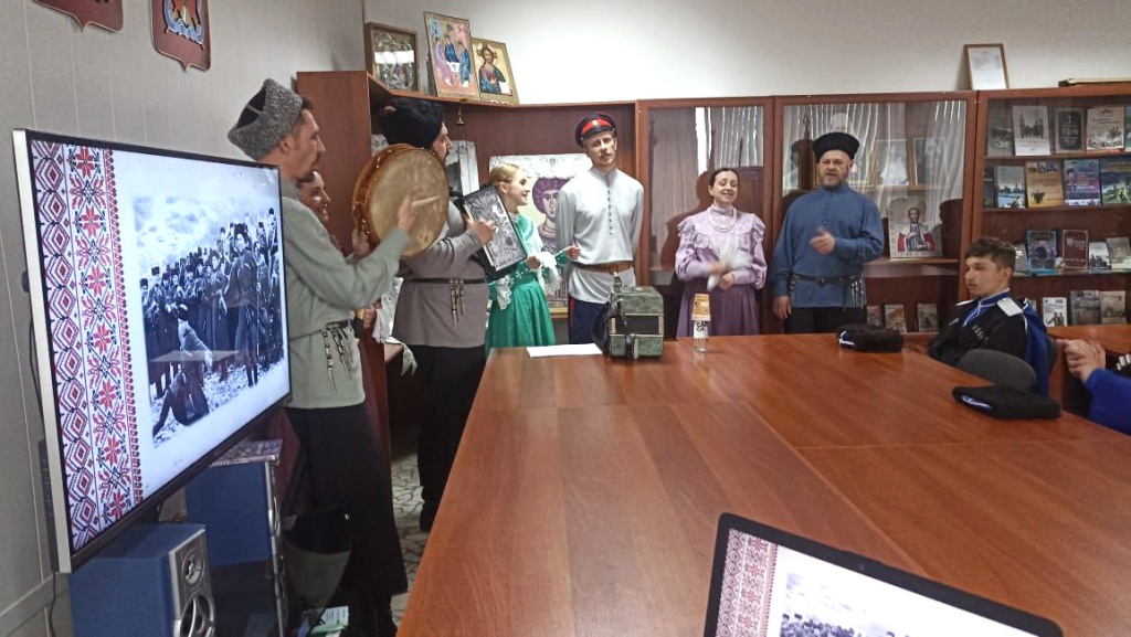 Именно казачьей песне было посвящено интерактивное мероприятие «Когда мы были на войне». Посетители узнали много нового об истории появления и бытования той или иной песни, обсудили заложенный в них глубокий смысл. Солисты фольклорного ансамбля «Казачий пикет» своим исполнением смогли погрузить слушателей в удивительный мир казачьей песни, вызывая сопереживание и слезы, а иной раз затягивая в зажигательную пляску.