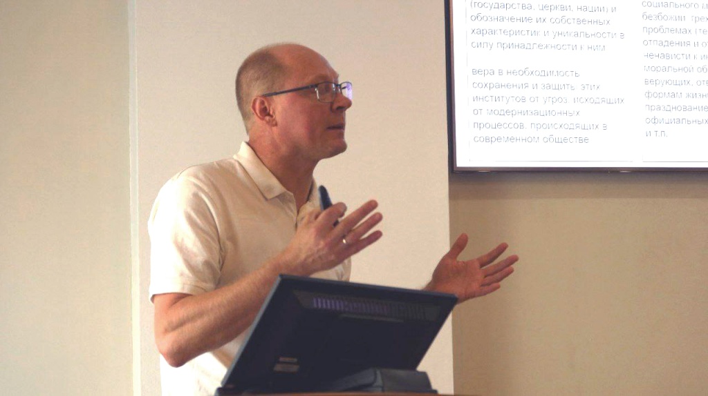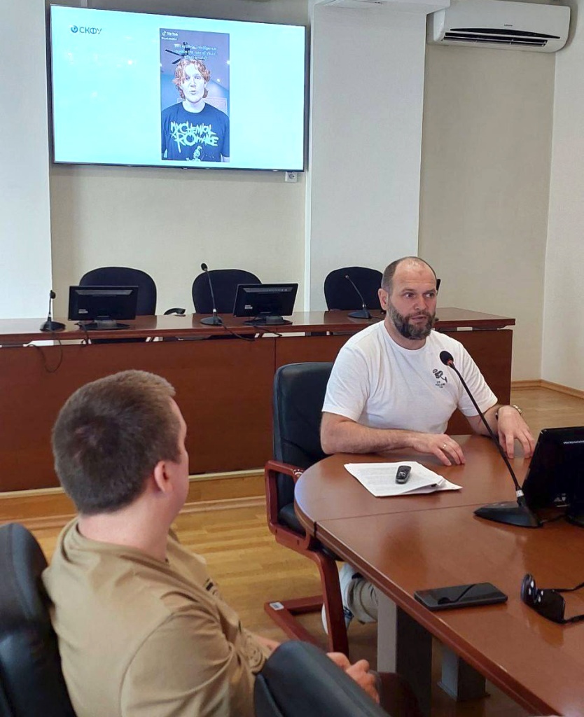 Заведующий кафедрой журналистики Высшей школы креативных индустрий СКФУ, доцент, кандидат филологических наук А.М. Горбачев представил обзор актуальной ситуации в сфере противодействия идеологии терроризма и другим информационным угрозам, рассказал о сложном процессе навигации современного человека в окружающем его огромном информационном пространстве, о создании профилактического контента.