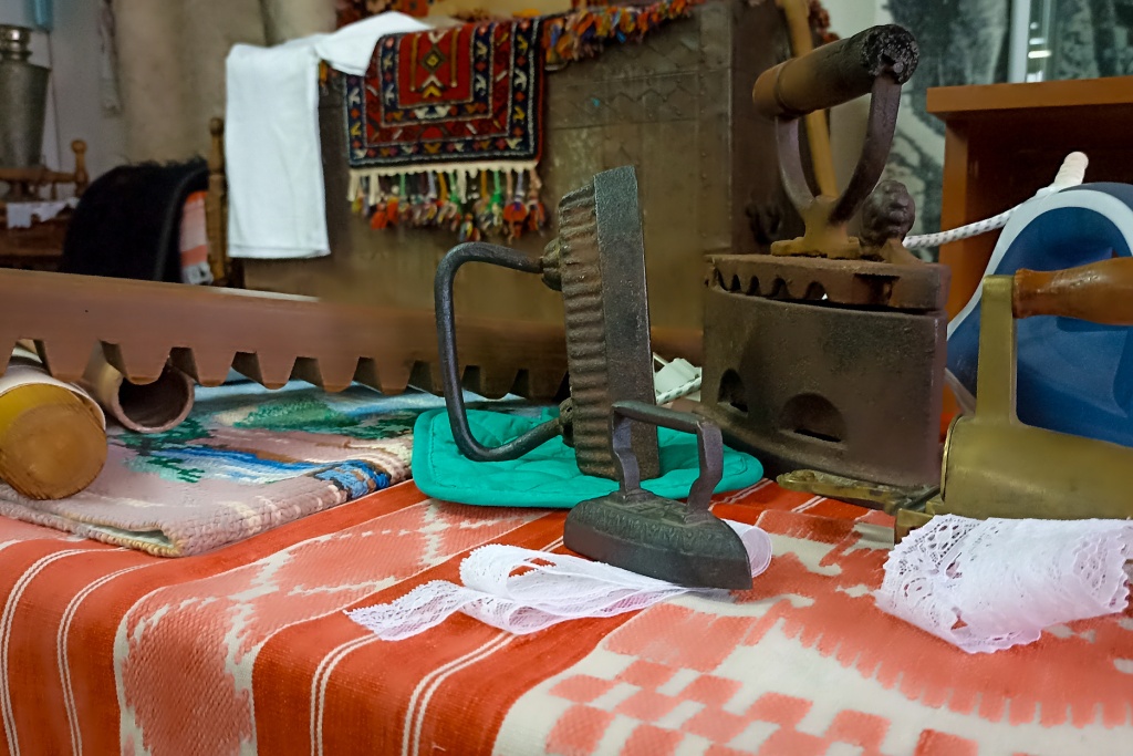 В экспозиционном интерьере «Казачья хата» ребята узнали историю предмета, о котором, казалось бы, известно всё. Утюгу уже более 140 лет, он привычен и знаком каждому, однако многие факты об этом бытовом приборе сегодня вызывают удивление. Школьники узнали, что утюги были и деревянные, и фарфоровые, и стеклянные, и даже каменные. Существовало большое разнообразие форм, размеров, способов глажения и различных приспособлений для удобства в работе.