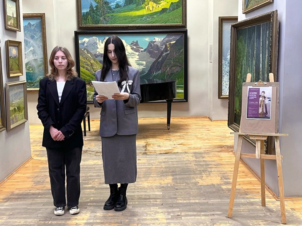 16 апреля 2025 года в картинной галерее прошел семинар клуба поэтических встреч студентов Гуманитарного института СКФУ. Участники клуба обсудили тему «Женские образы в древнерусской книжности».