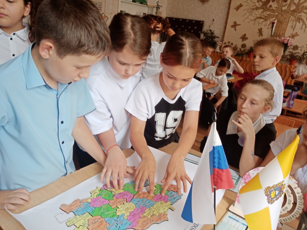 Школьники совершили путешествие по родному краю и познакомились с историей городов и сел. Затем учащиеся сложили карту Ставропольского края из пазлов, 34 разноцветные детали которой полностью соответствуют административным границам региона. Во время увлекательной игры школьники запомнили названия и расположение 26 районов, городов и сел.