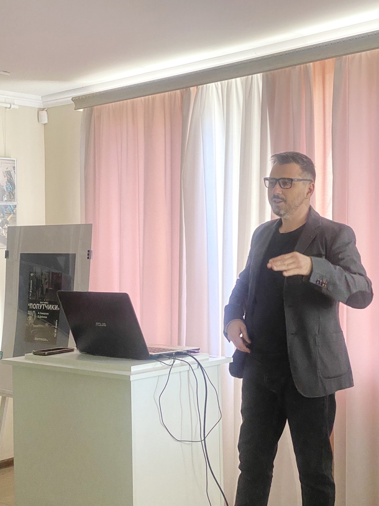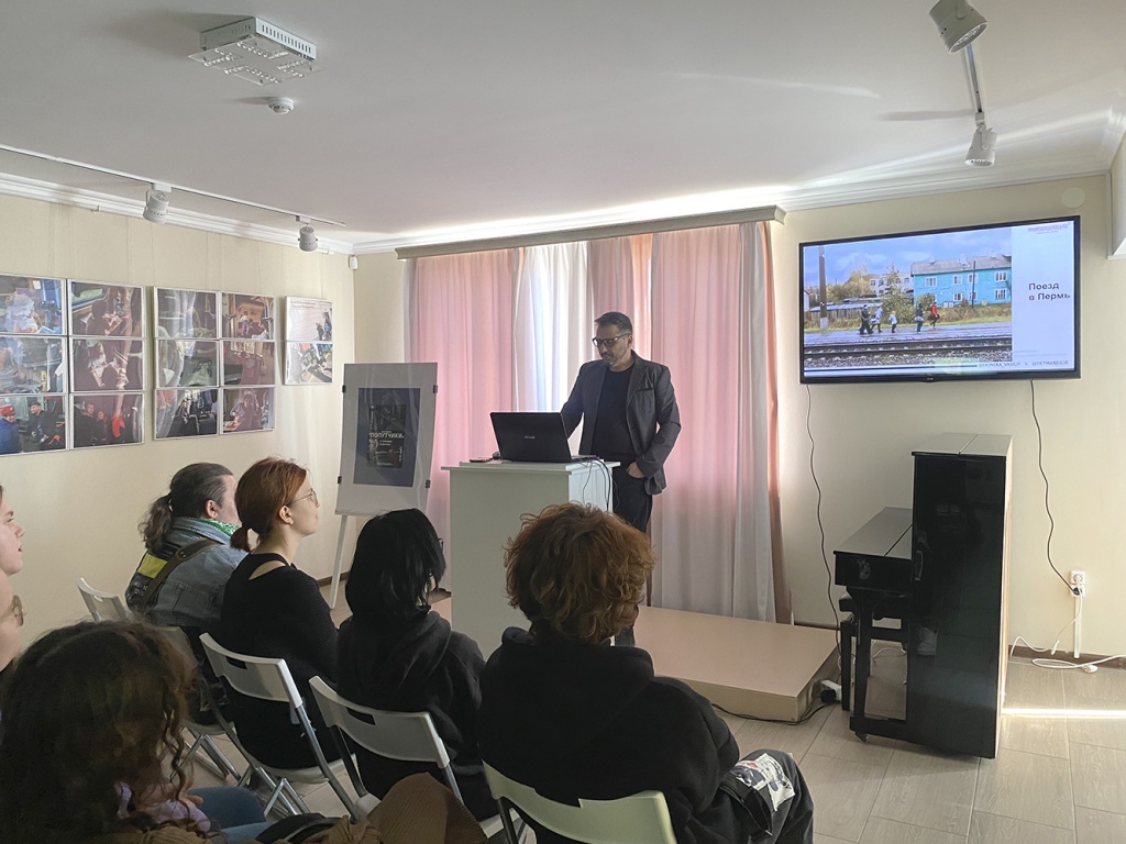 Одним из таких проектов является фотовыставка «Попутчики», спонсором которой выступили Российские железные дороги. Лектор рассказал присутствующим о том, как возникла сама идея создания данного проекта, какие цели и задачи были у авторов, как разрабатывался маршрута путешествия, и как в результате всего этого появилась серия фоторабот, представленных в экспозиции. На примере десятков фотографий, множества видеосюжетов автор поделился знаниями об особенностях съемки в дороге и о том, как правильно составлять «дневник путешественника».