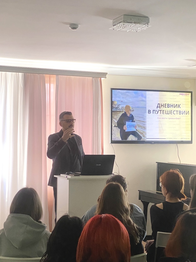 28 февраля 2024 года в Музее-усадьбе художника-академиста В.И. Смирнова на базе выставки «Попутчики» состоялась лекция «Дневник в путешествии. Как вести тревел-блог?»