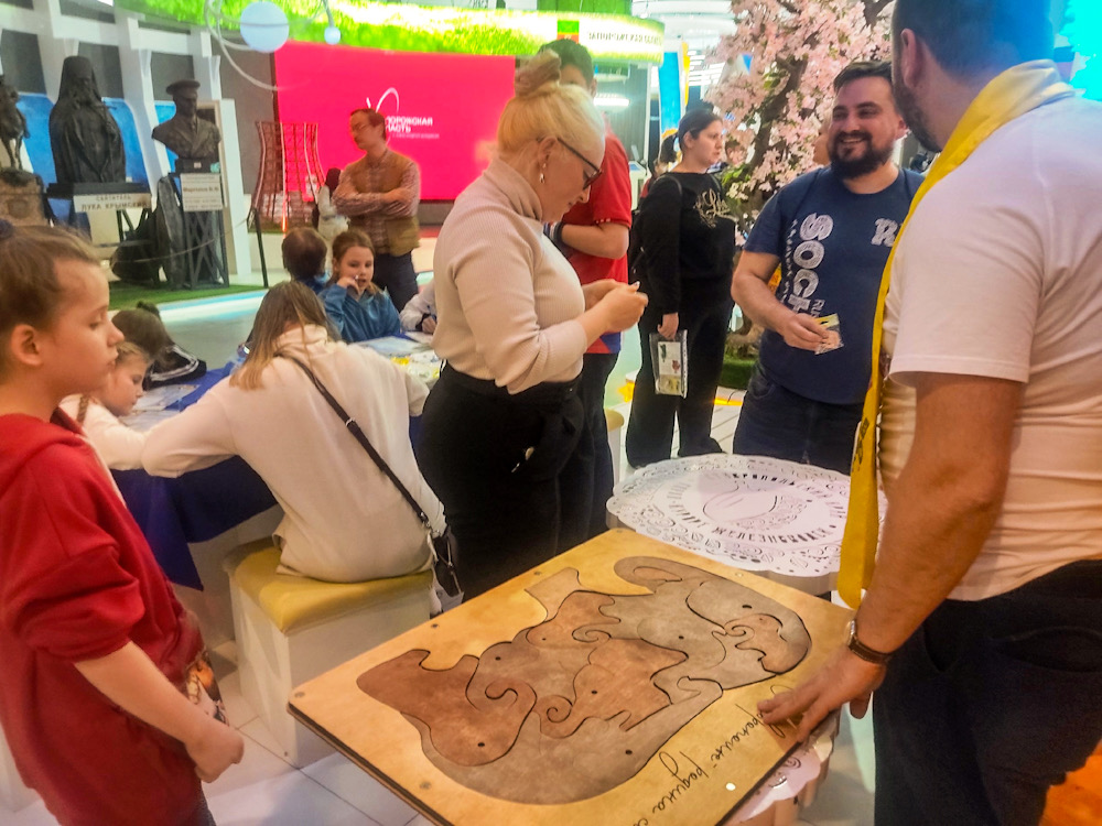 Каждый посетитель экспозиции Ставропольского края смог изготовить памятный сувенир – магнит с изображением символа Ставрополя – южного слона. Участники мастер-класса не только узнали интересные факты о южном регионе России, но и смогли украсить свои магниты.