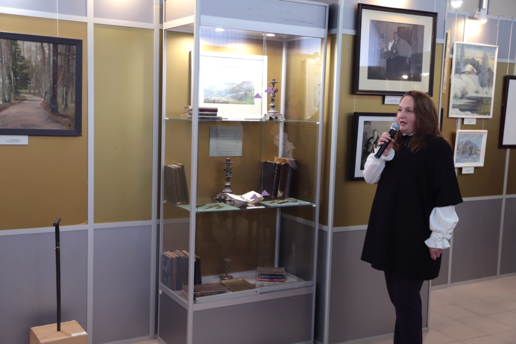 Присутствующих на открытии выставки поприветствовал Николай Анатольевич Охонько – директор Ставропольского государственного музея-заповедника. Экскурсию по выставке провела представитель Пушкинского музея-заповедника Алёна Евгеньевна Бойцова, начальник службы просветительной и выставочной работы. Она эмоционально рассказала о роли Михайловского и Тригорского в жизни и творчестве великого русского поэта А.С. Пушкина, о Михайловской ссылке поэта, когда им было создано около 100 литературных произведений.