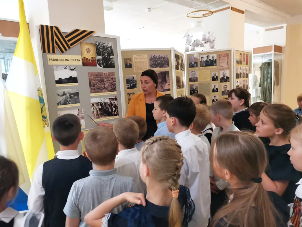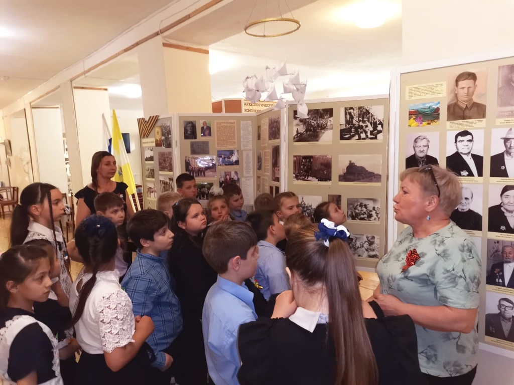 Учащиеся общеобразовательной школы № 11 села Татарка познакомились с фотографиями и документами жителей села Татарка – участников Великой Отечественной войны 1941 – 1945 гг. Сотрудники музея показали тематическое слайд-шоу о ратных подвигах земляков – Героя Советского В.Я. Союза Ткачева, заслуженного художника РСФСР П.М. Гречишкина, Героя Социалистического труда А.А. Волобуева, участника освобождения Ставрополя В.К. Шаповалова, поэта И.А. Усачёва и других.