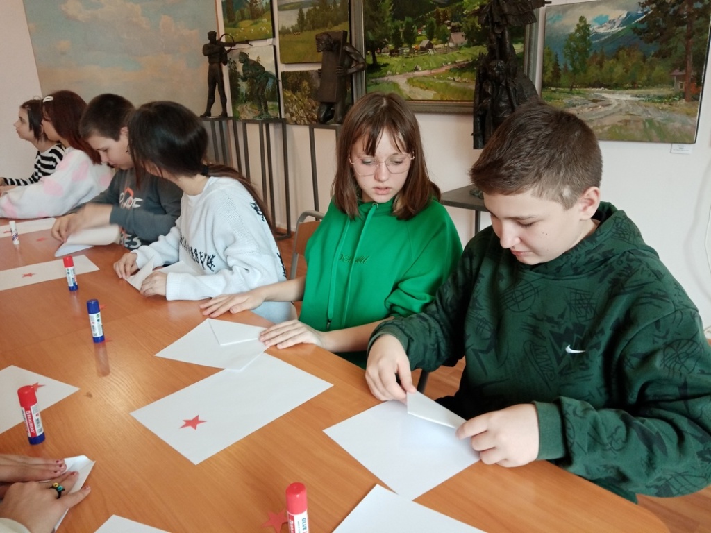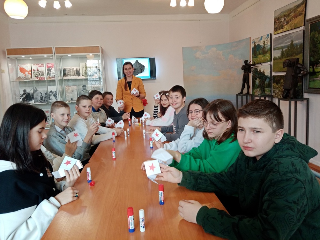 На базе выставки «Слава защитникам Отечества!» для учащихся был проведен мастер-класс по изготовлению оригинальной поздравительной открытки в форме будёновки. После экскурсии по выставке школьники познакомились с музейной коллекцией праздничных открыток и приняли участие в викторине.