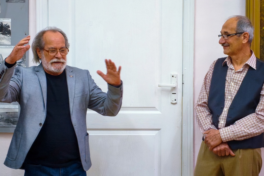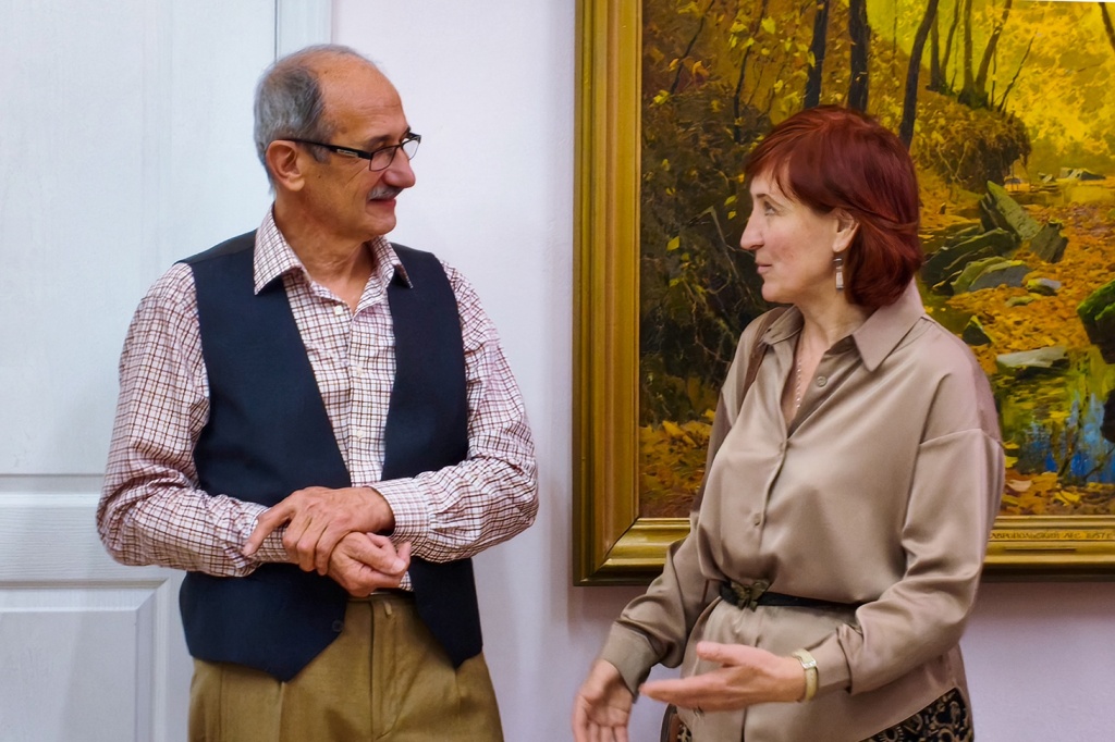 Анатолий Борисович поделился своими впечатлениями от дебютной выставки, подчеркнув символическую ценность представить ее именно в Картинной галерее пейзажей художника П.М. Гречишкина. Художник поделился воспоминаниями о совместной работе с Павлом Моисеевичем.