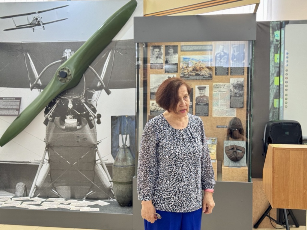 Заведующий отделом истории, кандидат философских наук М.Ю. Гордылева провела для участников мероприятия экскурсию по выставке «Боевая доблесть Ставрополья». Экскурсанты увидели подлинные экспонаты периода Великой Отечественной войны: фронтовые письма, документы, награды, обмундирование, вооружение, боевые знамена, военные трофеи и многое другое.