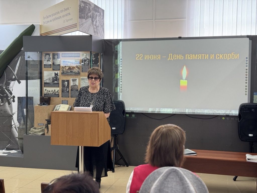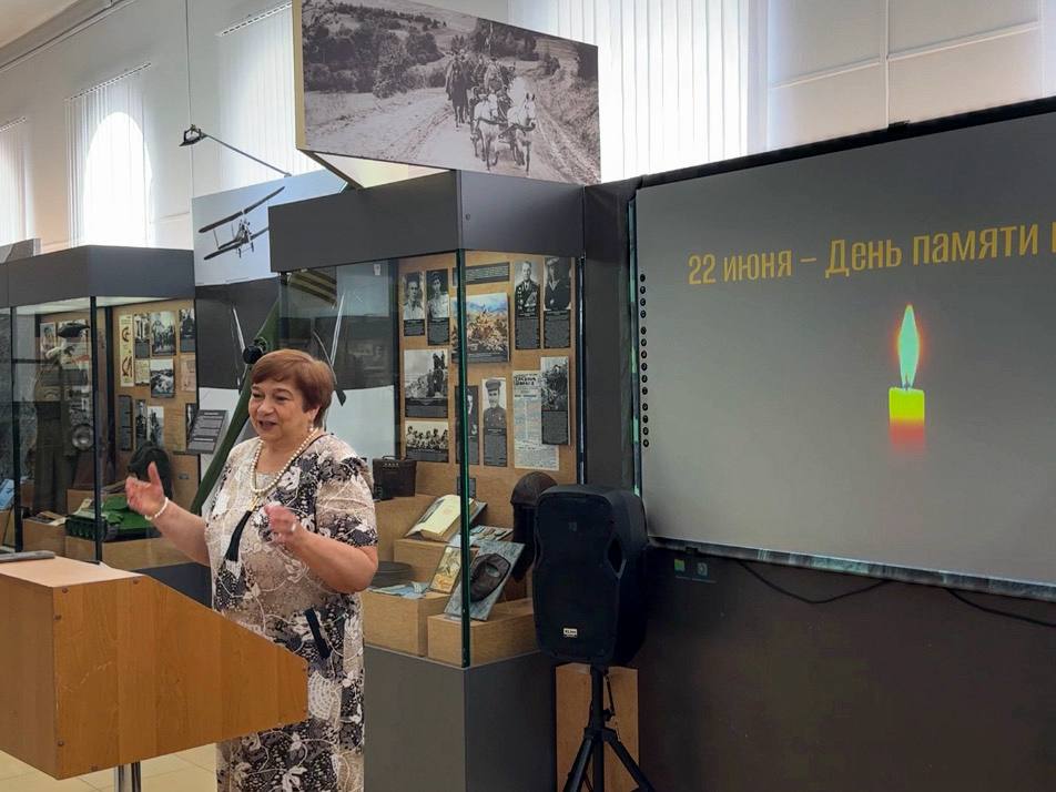 Присутствующие почтили минутой молчания погибших за Родину советских граждан. Затем гости музея посмотрели видеосюжет «Священная война», подготовленный научными сотрудниками отдела истории, познакомились с документальными хрониками, а также услышали воспоминания очевидцев тех страшных событий.