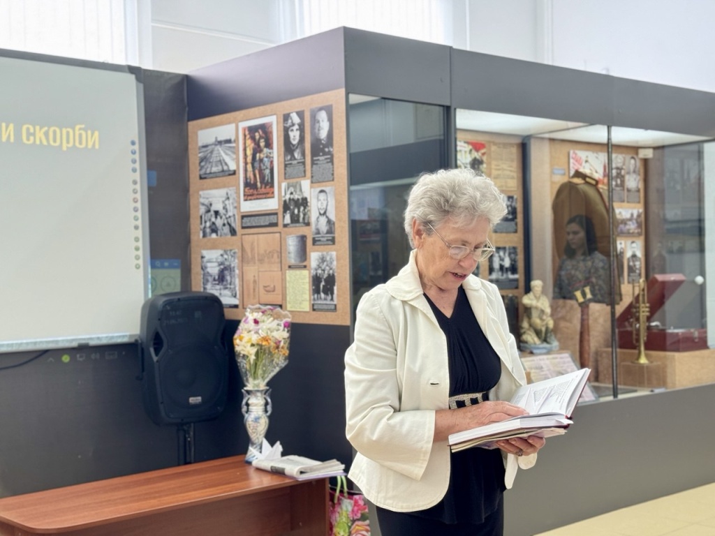 Дню памяти и скорби было посвящено выступление Р.К. Шевчук. Она напомнила присутствующим, какие тяжелые испытания легли на плечи всех жителей страны, сколько было невосполнимых потерь, какой высокой ценой досталась наша Победа. Р.К. Шевчук подчеркнула важность проведенной клубом совместно с музеем краевой акции «Хранители памяти о Великой Отечественной войне», в которой приняли участие 60 человек, из них 28 школьников. Организованная в год 80-летия Победы масштабная акция, затронувшая жителей всего края, имеет особую значимость для патриотического воспитания детей и молодежи. Ребята изучили историю своей семьи, глубоко прочувствовали, какие тяготы пришлось пережить их родным в годы войны, и какой личный вклад в Победу они внесли.