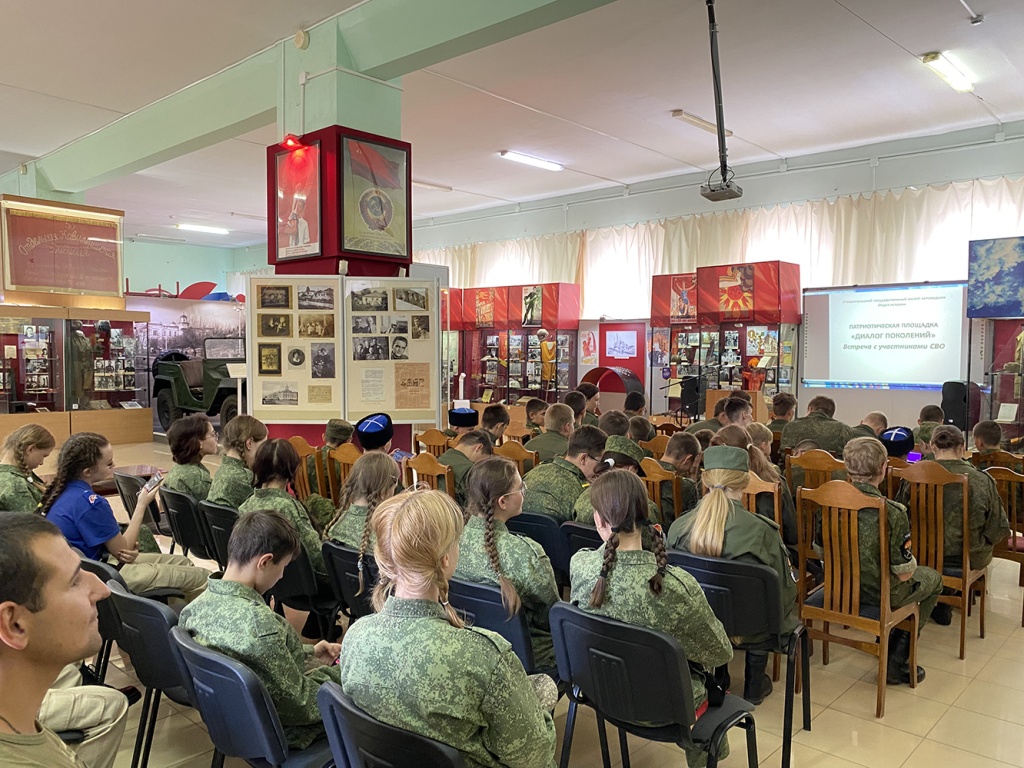 13 сентября 2024 года, в преддверии Дня города и края, в Ставропольском государственном музее-заповеднике для воспитанников Архиерейского казачьего конвоя и юнармейцев г. Ставрополя состоялась патриотическая площадка «Диалог поколений» в рамках акции «Zа Отчизну Vместе».