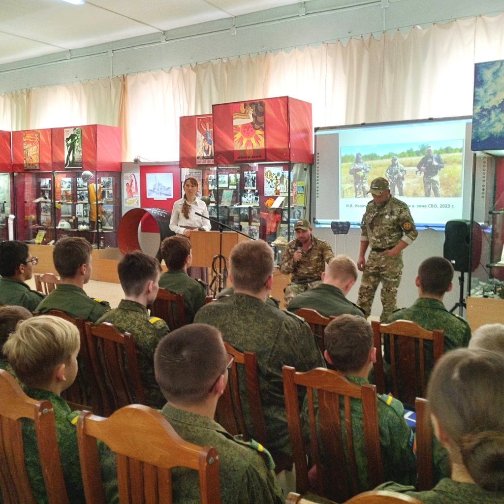 Затем перед подрастающим поколением выступили почетные гости встречи – участники СВО. Они рассказали об однополчанах и об их подвигах, о своем решении пойти защищать Отечество. Юные посетители музея смогли задать военнослужащим интересующие вопросы.