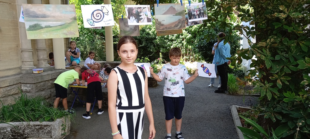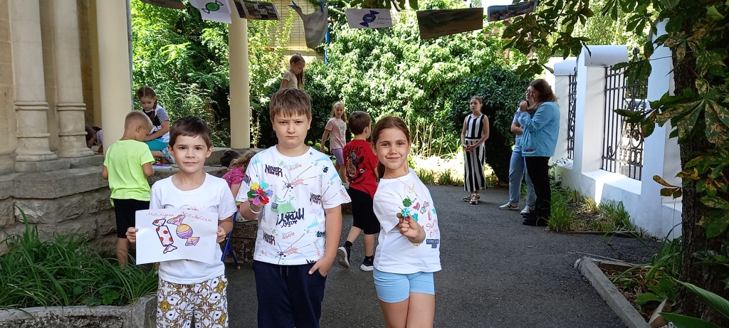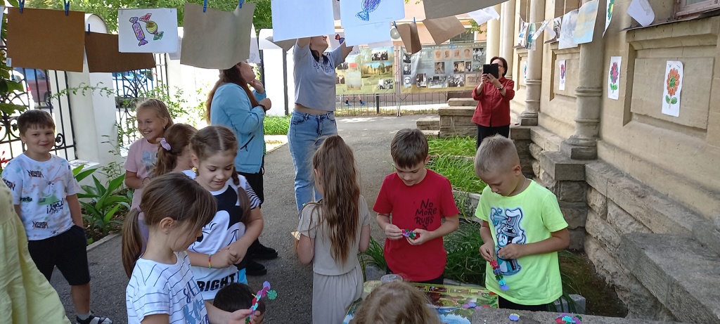 После знакомства с биографией художника Павла Моисеевича Гречишкина и историей создания живописных полотен дети приглашаются во дворик к свободному творчеству, где они могут выразить с помощью разных материалов свои впечатления. Например, зрители из лагеря «Котофей» решили создать декоративные конфеты, которые тут же рассыпались в воздухе причудливым конфетти на пленэрной выставке.