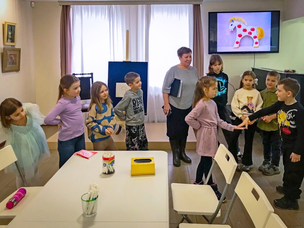 Сотрудники музея рассказали о любимых игрушках детей Смирновых, в числе которых была деревянная лошадка. На мастер-классе по живописи каждый ребенок получил деревянную лошадку и расписал ее красными, желтыми и зелеными яблоками. Свои разноцветные подарки участники сразу вручили мамам.