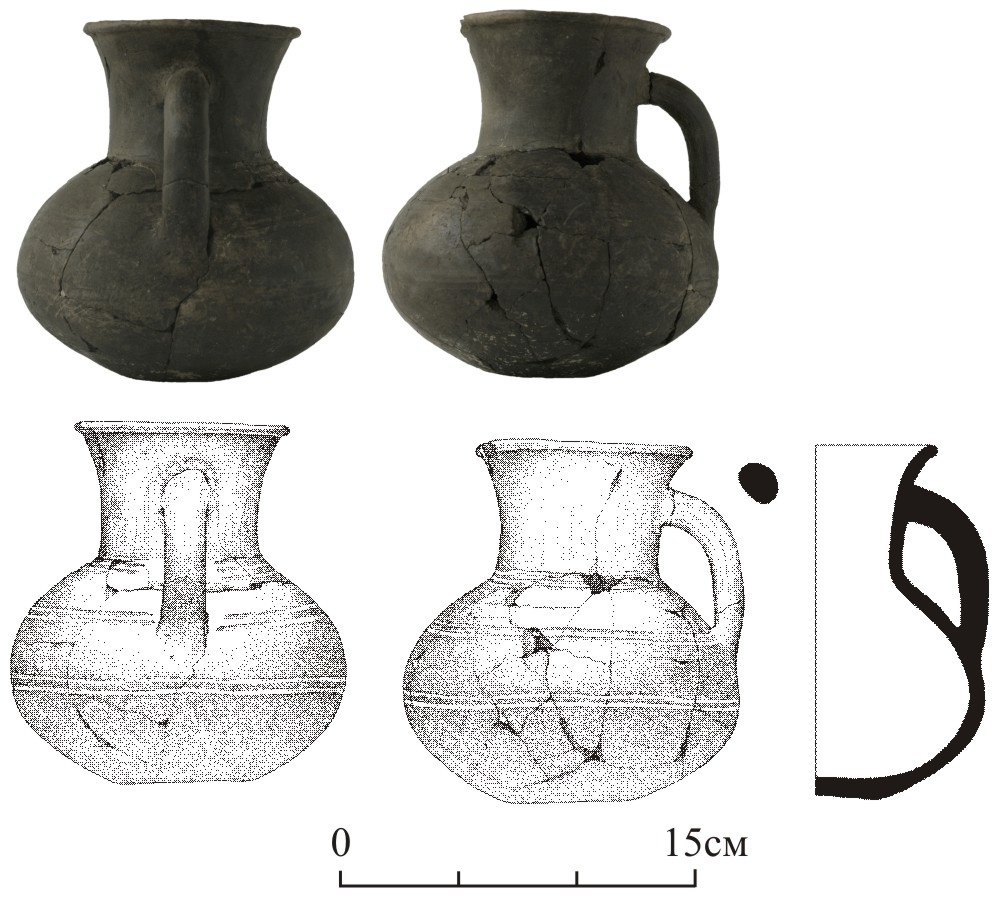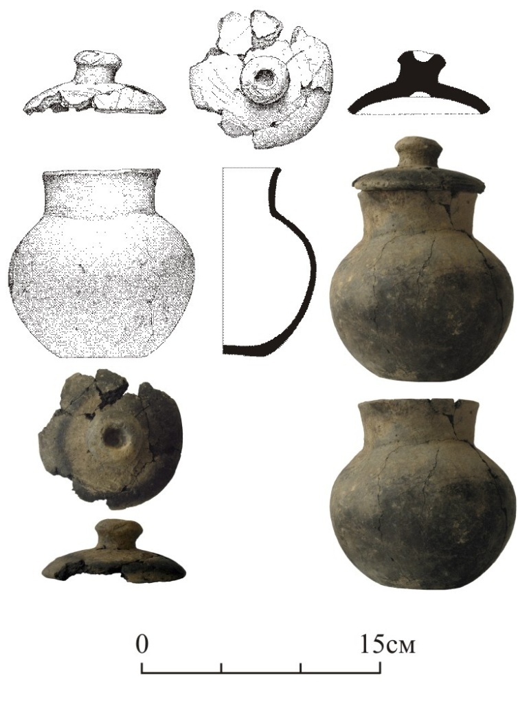 Инвентарь погребенного состоял из короткого железного меча синдо-меотского типа, костяной накладки полусферической формы, глиняного сосуда с крышкой и кувшина с ручкой. Помимо погребального инвентаря, за головой умершего располагались кости животного (заупокойная пища) – левая половина таза и кости левой задней ноги, принадлежавшей молодой овце.
