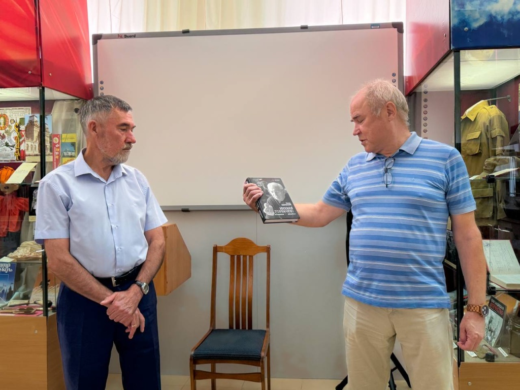 Сегодня рабочую планерку в Ставропольском музее-заповеднике посетил журналист и политик Василий Вячеславович Балдицын. Он подарил музею новую книгу известного российского журналиста и писателя Леонида Васильевича Никитинского «Михаил Горбачев: «Главное – нАчать».