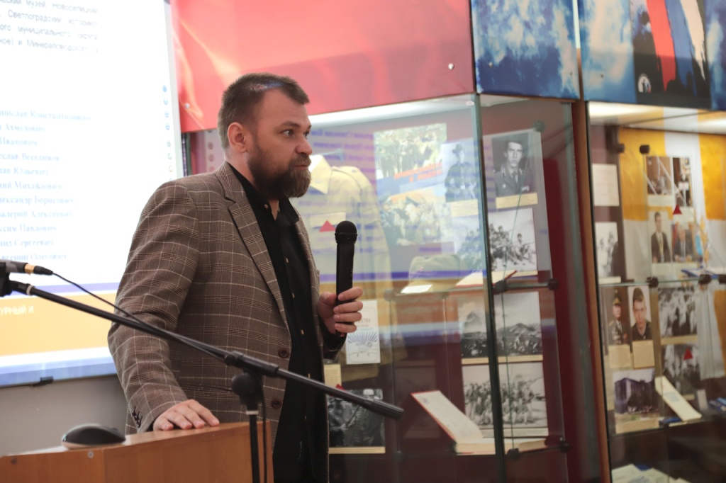 Ставропольский казак А.Б. Печников поблагодарил коллектив музея-заповедника за проделанную работу по увековечиванию памяти воинов-ставропольцев, а также рассказал об участии наших солдат в спецоперации.