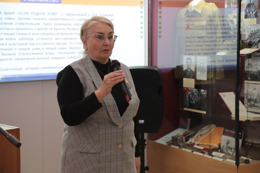 Со вступительным словом на встрече выступила заведующий отделом истории Ставропольского музея-заповедника М.Ю. Гордылёва. Она рассказала о краевом патриотическом проекте и его партнёрах. Ведущей мероприятия стала старший научный сотрудник отдела истории музея-заповедника А.С. Кудрина.