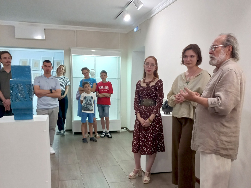 Содержание выставки раскрыла в авторской экскурсии Александра Владыкина. Представленные композиции – «Лёд», «Белая река», «Переплетения», «Первый снег», «Свет во тьме светит» и др. – вдохновлены природой. Ее мотивы проявляются в созданных предметах не прямо, а через формы, цвет, фактуры. Недаром выставке дан подзаголовок «Диалог природы и глины». Используя для создания художественных изделий простой природный материал, авторы призывают беречь планету. Эта идея выражена, например, в композиции-трансформере «Новая жизнь»: скульптуру в виде сухого дерева посетитель выставки может «оживить» цветами.