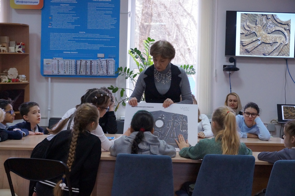 Новая аудитория проекта – юные читатели Ставропольской краевой библиотеки для слепых и слабовидящих им. В. Маяковского. Для слабовидящих детей была проведена заочная интерактивная экскурсия «На золотом крыльце…». В ходе экскурсии дети узнали историю Мавзолея аланского правителя XI века и познакомились с научной интерпретацией рельефных изображений на его стенах. Им были предложены для тактильного ознакомления объемные макеты мавзолея, каменных изваяний, находящихся в лапидарии Ставропольского государственного музея-заповедника. Дети узнали о спектакле театра кукол «Жизнь и подвиги царя Дорголела» по мотивам средневековых изображений на стенах мавзолея. С энтузиазмом они приняли участие в создании живых картин, изображая основные мифологические сюжеты рельефных изображений мавзолея.