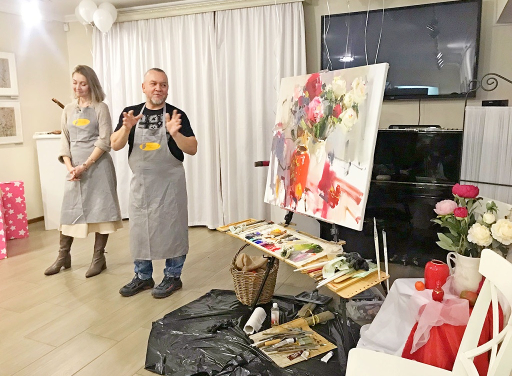 В этой волшебной обстановке художники Олег Калайтанов и Наталья Литосова на большом холсте совместно создали яркое, экспрессивное живописное полотно, в котором отразили свои впечатления от происходящего на сцене.
