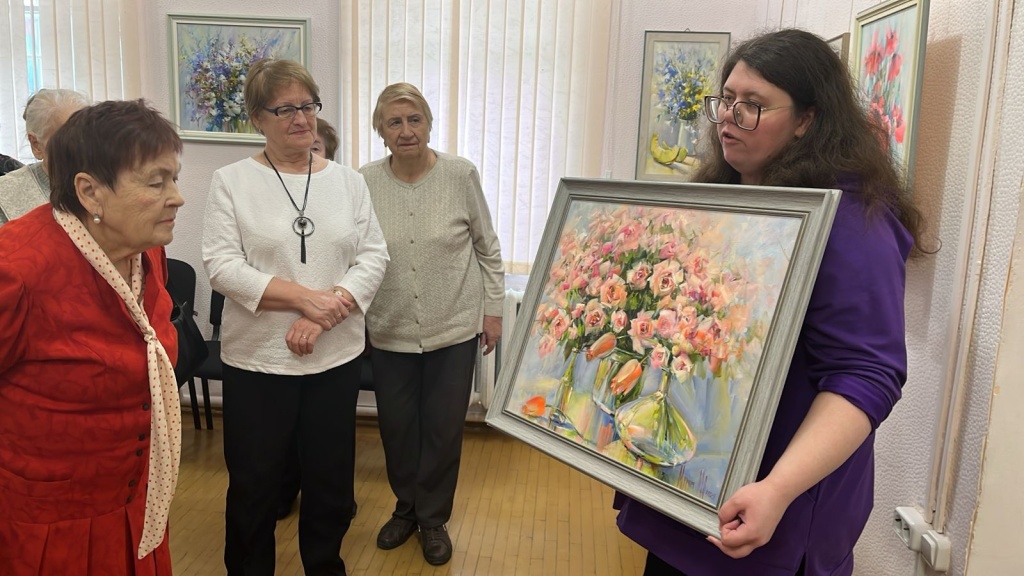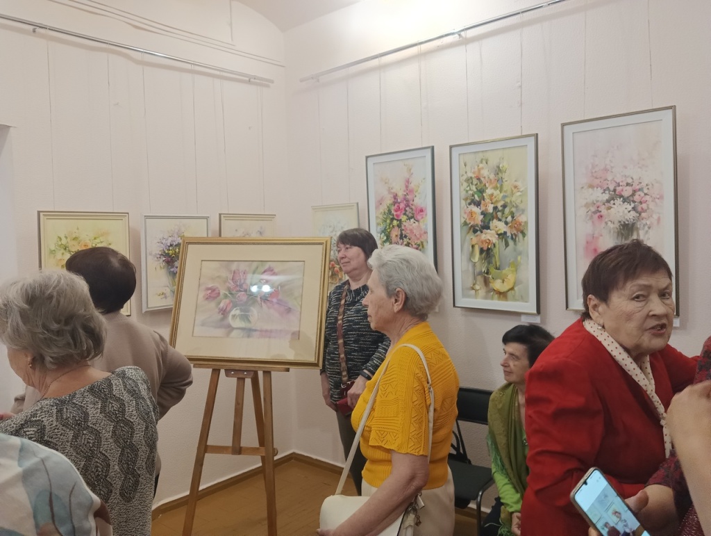 Далее участницы клуба были приглашены на «Бал цветов» - выставку цветочных натюрмортов художницы Марины Мурчич. Заведующий картинной галереей, искусствовед Авдеева Таисия Дмитриевна поделилась интересными подробностями богатейшей истории жанра, рассказала о том, какие тайные смыслы вкладывали голландские художники в натюрморт, какие нешуточные страсти кипели в обществе за право обладать луковицей тюльпана.