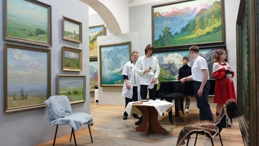 Июнь в картинной галерее – пора театрального дебюта. Среди бескрайних полей и березовых рощ кисти П.М. Гречишкина разворачиваются драматические сюжеты русской жизни пера выдающихся отечественных драматургов. В роли актеров и постановщиков – будущие дизайнеры и программисты.