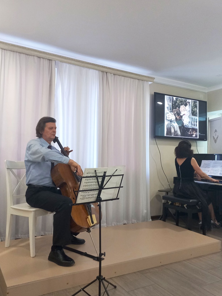В исполнении дуэта Анастасии Голубовой (скрипка) и Николая Голубова (фортепиано) прозвучал самый знаменитый номер из оперы «Ёлка» В.И Ребикова – «Вальс», этюд-картина «Море и чайки» великого русского композитора С.В. Рахманинова прозвучала в сольном исполнении Николая Голубова. В завершении вечера своим выступлением гостей порадовали солисты Ставропольской государственной филармонии – лауреаты всероссийских и международных конкурсов Роман Стороженко (виолончель) и Ольга Козырева (фортепиано), исполнившие произведение Карла Давыдова «Романс без слов».