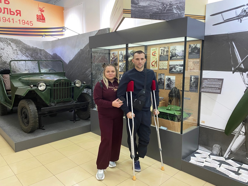 Один из участников СВО, посетивших музей, прибыл на экскурсию, находясь на лечении в военном госпитале г. Ставрополя. Военнослужащего сопровождала его супруга.