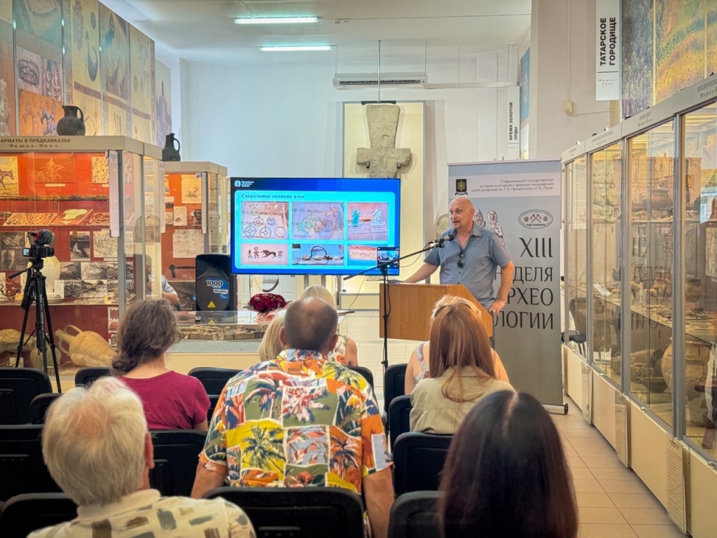 Завершило конференцию эмоциональное выступление доцента кафедры теории и методики истории и обществознания СГПИ Д.В. Пикалова. Дмитрий Владимирович рассказал о сакральных символах алан на примере экспонатов музея-заповедника. Автор привел в пример знаменитый образ оленя, который, по его мнению, служит медиатором между мирами, перенося душу умершего в мир иной.