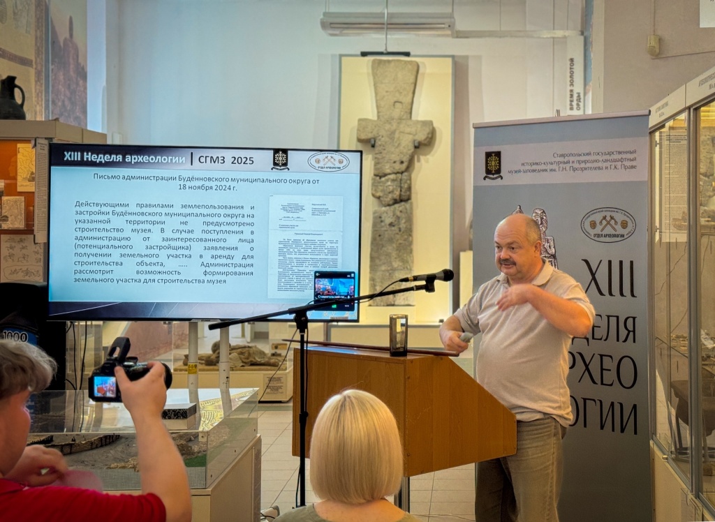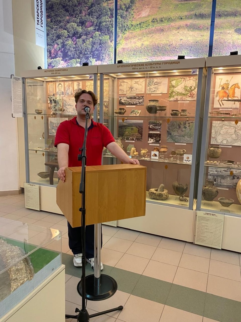 Заведующий филиалом краеведческого музея села Прасковея Ю.Д. Обухов рассказал об истории исследования золотоордынского города Маджар и перспективах создания там музейного комплекса. Юрий Дмитриевич описал проблемы, связанные с реализацией проекта, и перспективы музея.